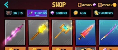 5、在游戏主界面点击shop,可以轻松进入商店消费金币,购买心仪的武器。选好之后记得装备,开局时便可以立刻使用哦!