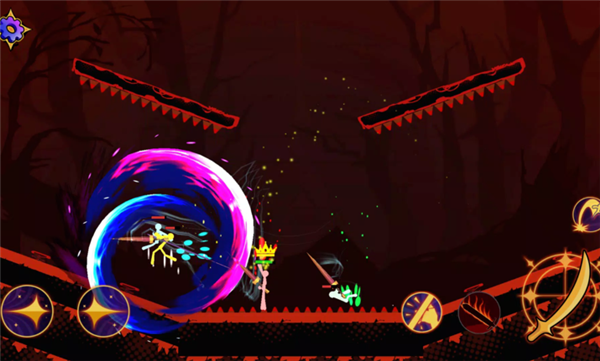 2、在关卡中,利用左侧的摇杆来控制角色移动,而右侧则是攻击和跳跃的按键,迅速找到合适的节奏。