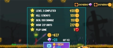 4、当你成功击败场景内的所有敌人后,便可以顺利通关,收获金币奖励,助你在接下来的挑战中更进一步。