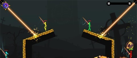 3、战斗进行时,各种武器会随机从天而降,这些武器拥有各式各样的技能和攻击方式,灵活运用才能让你逆转战局。