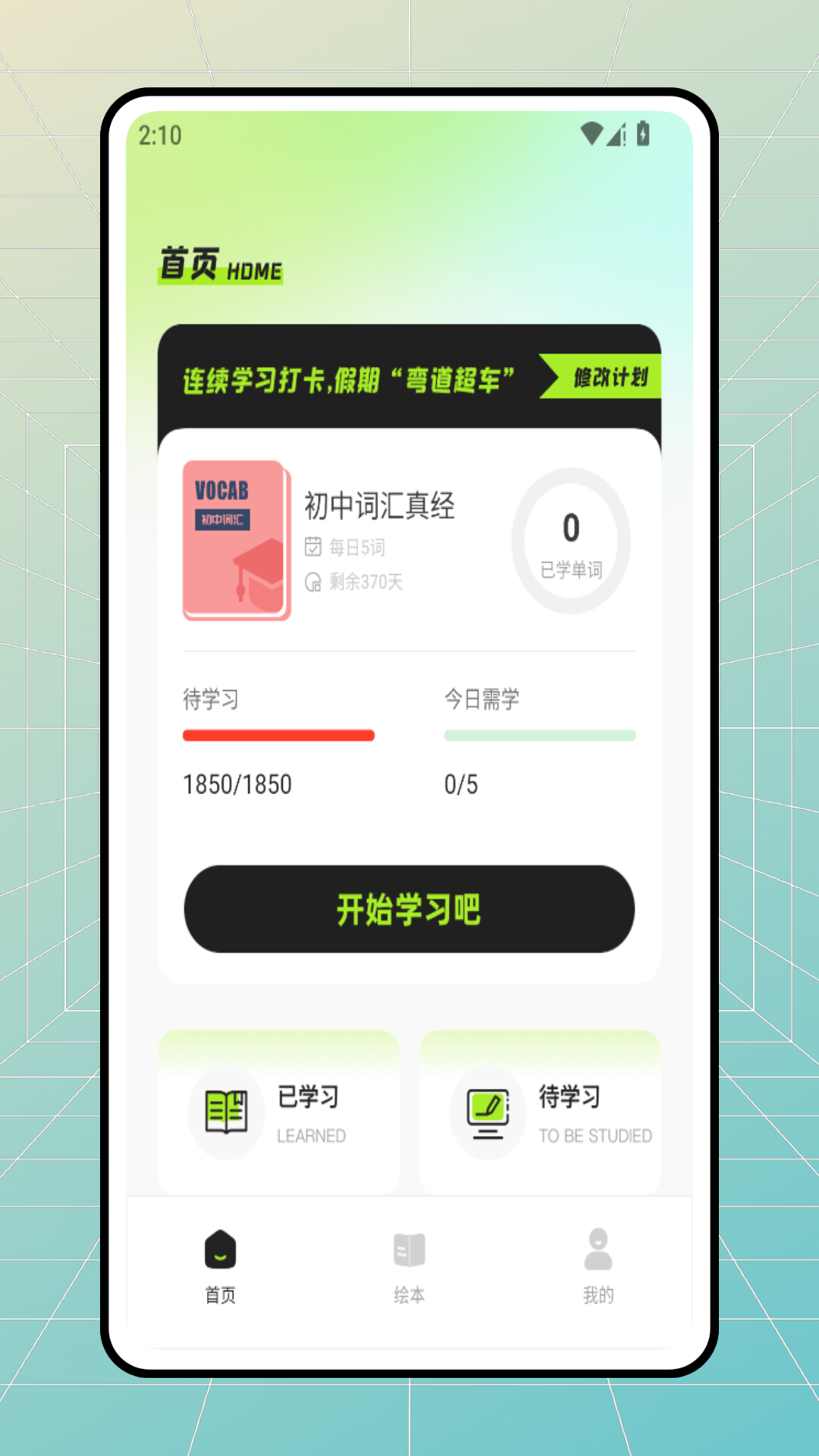 2、学习计划便捷去定制,还可以去查看今日学习计划内容。