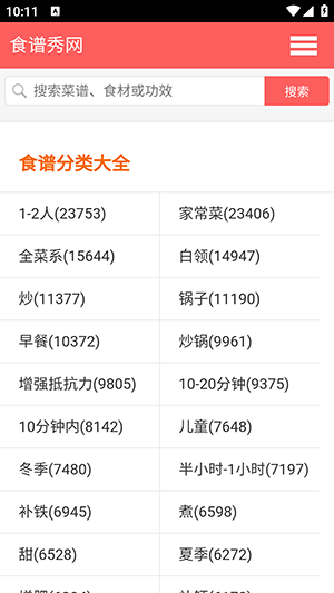 1.软件页面简洁,各类美食分门别类,标签清晰,用户可以通过界面直接选择自己想要烹饪的食物类型。