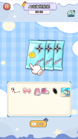 4、如下图所示,小编选择了山海经贴纸玩法,进入游戏后玩家需要撕开包装获取贴纸,然后自由拼贴这些贴纸。