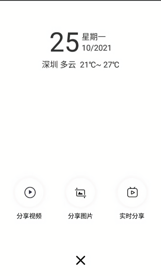 3、中间的加号就是分享图标,当有需要分享的内容时,点击,就可以分享图片视频,开启实时分享就是开启你的直播之路;