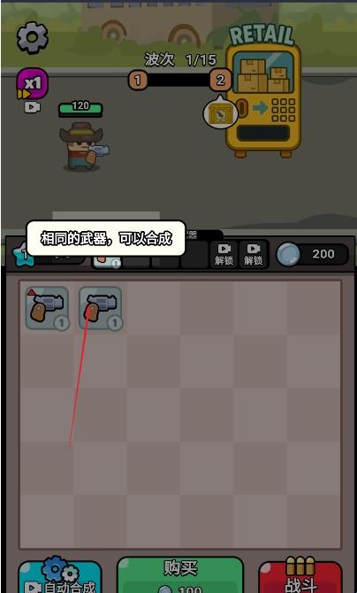 1、零售机购买武器,支持战斗中即时合成升级