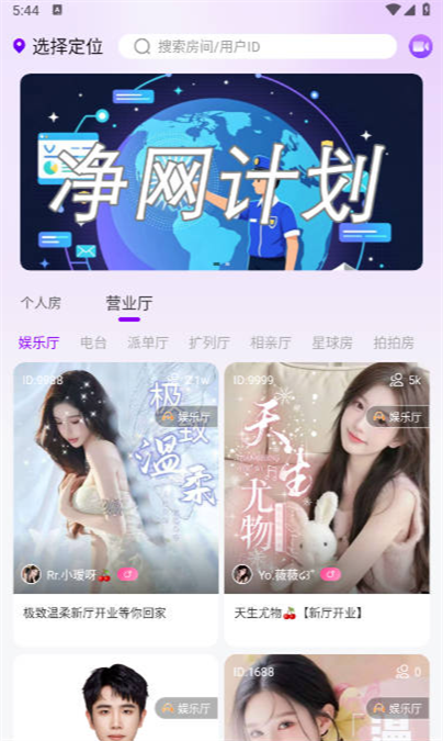 登录后,用户们可以挑选自己喜欢的营业房间,有娱乐厅,相亲厅等