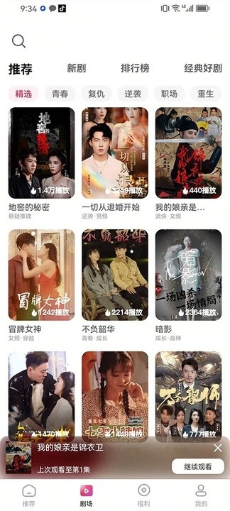 1、在剧场页面中推荐了非常多的短剧,还有很多短剧分类;