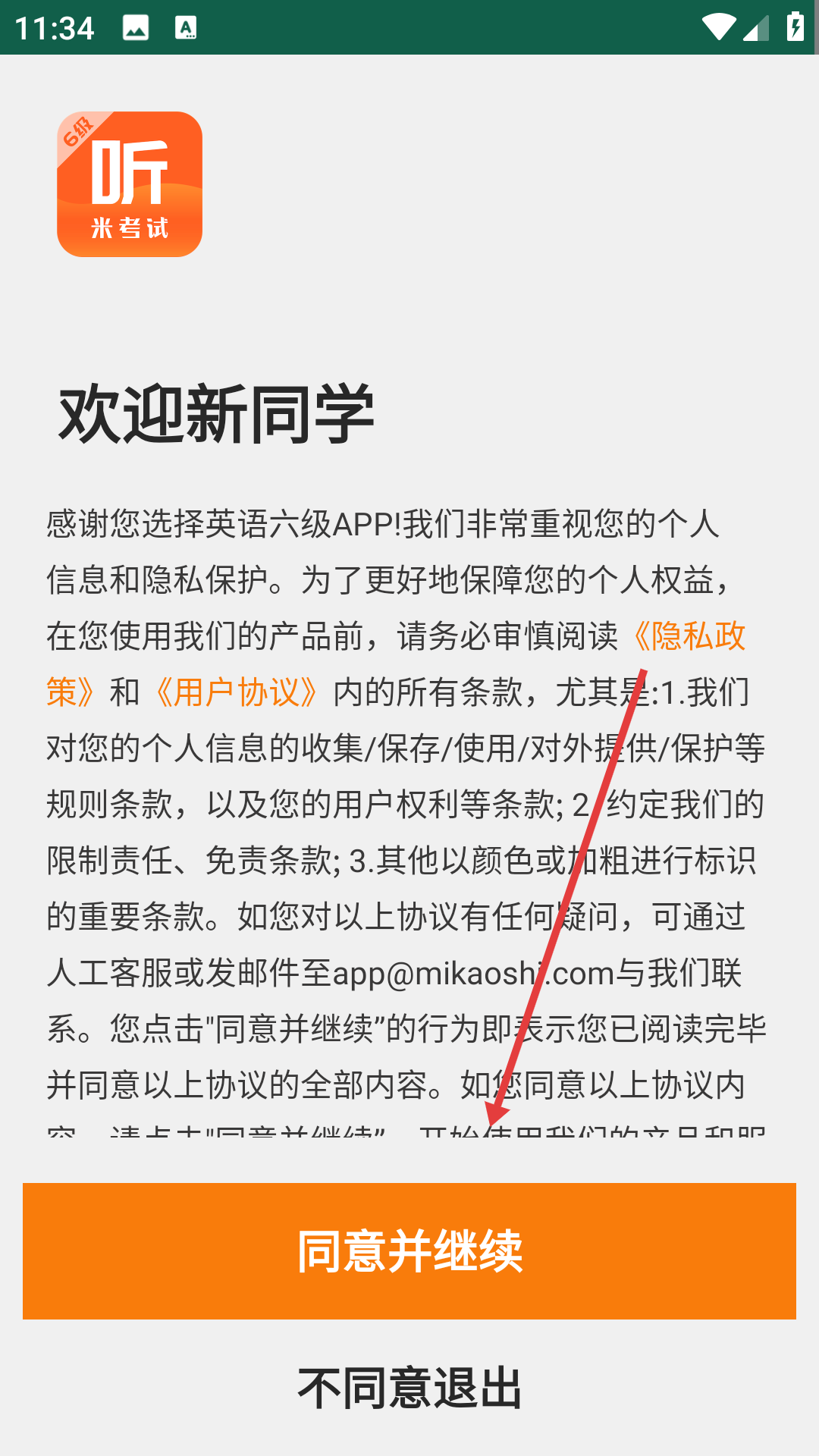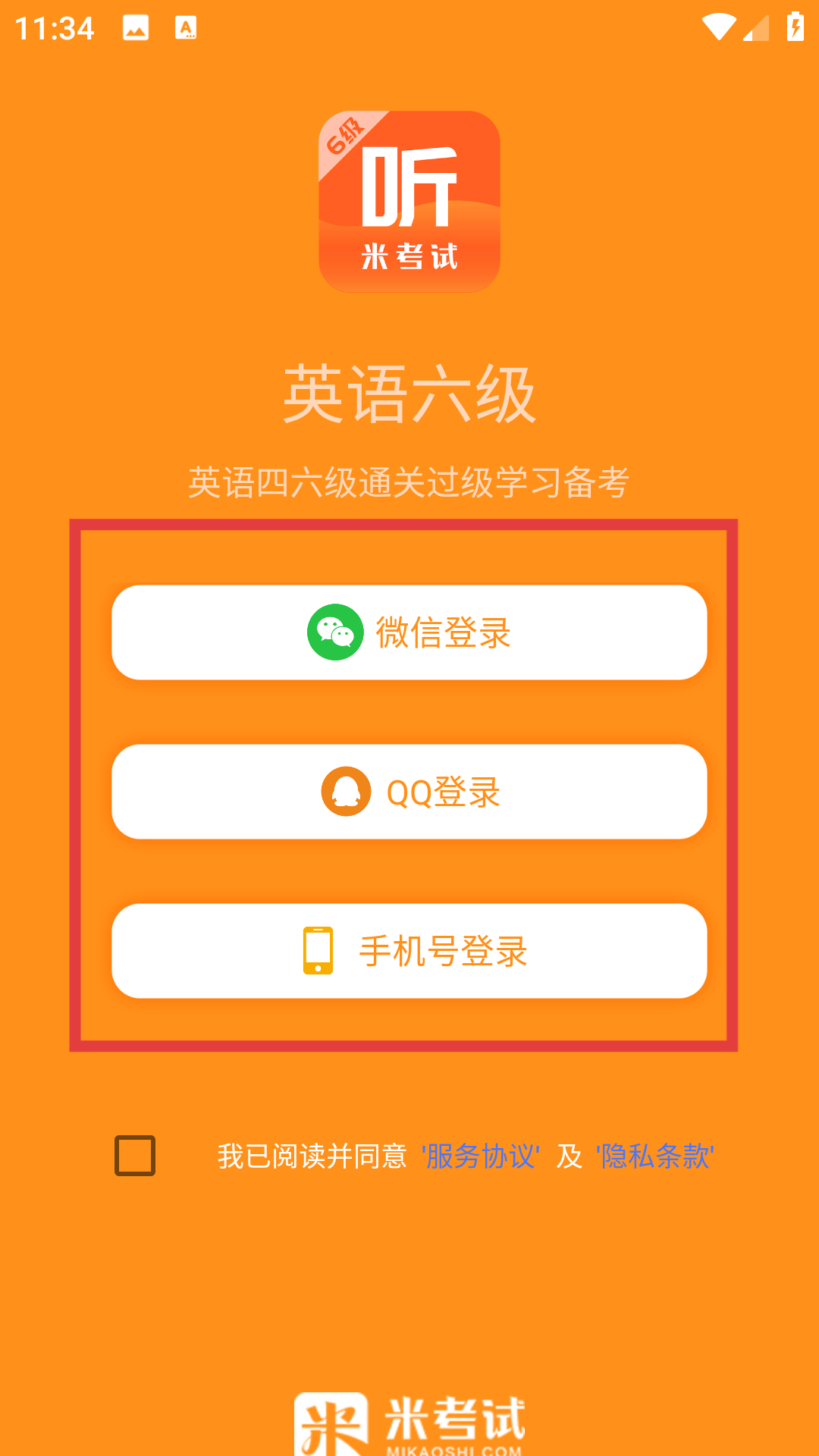 1、打开软件,阅读隐私政策和用户协议后,点击同意,并继续进入登录,页选微信QQ或手机号登录。