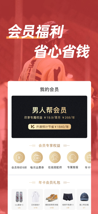 男人帮是一款潮流男装线上专卖商城软件。这里有海量的潮牌集结,尖货不断上新,更有专业的搭配师服务,手把手指导你穿搭,让你化身时尚达人。软件内提供海量的时装配饰搭配技巧,让你紧跟时尚潮流。更有各种风格的单品集合哦!