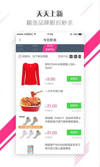 品牌特卖,每天上百个天猫品牌商品区;知名品牌,美食,美妆,家居,配饰,数码,服装等。