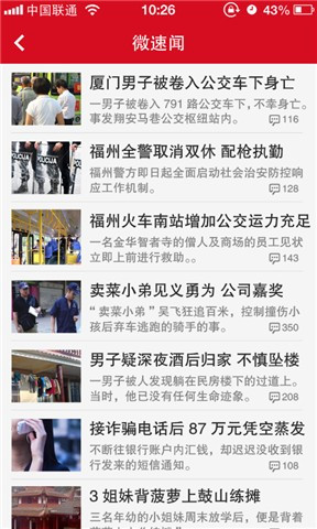 阅读福州大街小巷即时新闻,也会收到东南快报的要闻推送,可以进行新闻跟贴,浏览图片,离线阅读等。
