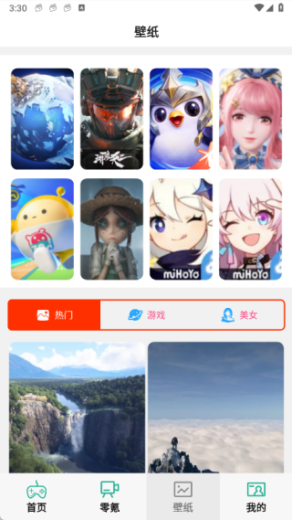 4、在壁纸页面中可以知晓热门、游戏以及美女壁纸,让你了解各类精彩壁纸很方便。