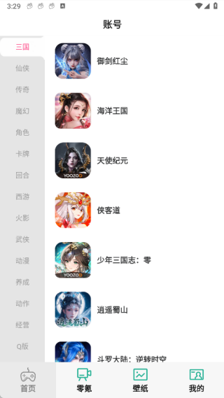 1、在首页中提供了非常多游戏的账号,选择你需要租的一个游戏进入;