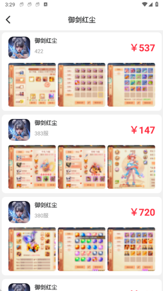2、进入后即会有很多该游戏的账号,找到你想要的账号进入详情页面进行购买;