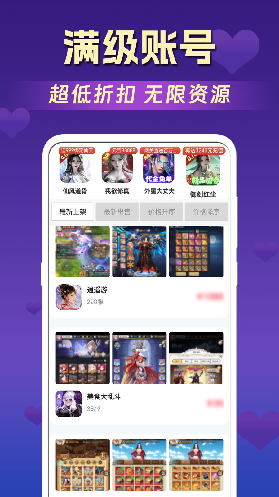 4、独特的折扣优惠号交易,体验到账户的高价值,感受游戏的魅力。