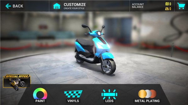 2、支持高度自由定制系统,从零件更换到涂装设计,玩家可打造独一无二的专属梦想摩托车。
