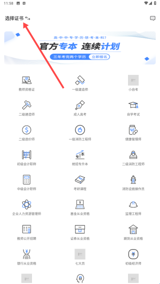 首页便捷导航:用户可以直接在首页点击选择所需证书。