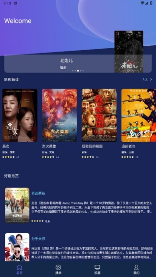1、安装进入app,在首页看到影视解读和好剧欣赏板块,了解节目信息。