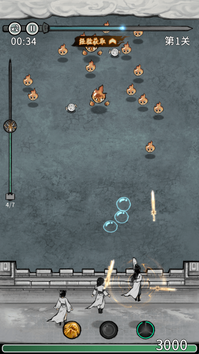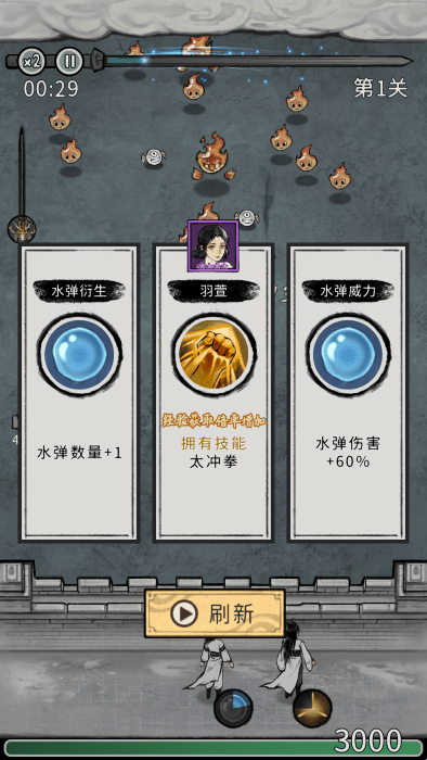 2、游戏一开始就会开始第一关,打怪,升级选择天赋技能。