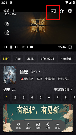 3、点击红色方框的位置可以搜索投屏设备进行投屏。