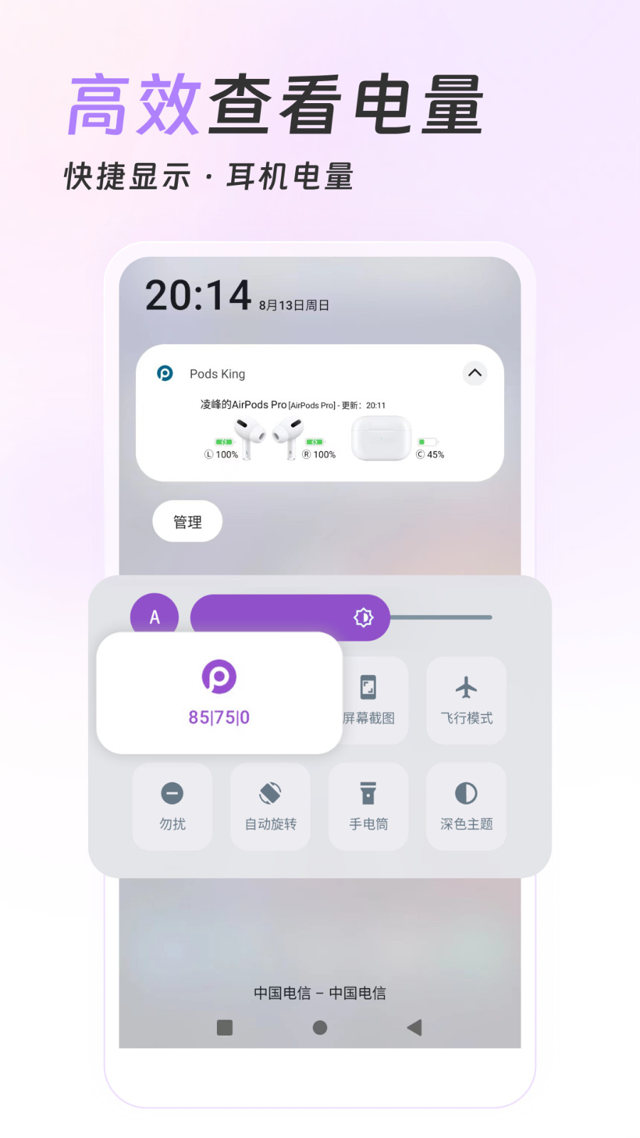 Pods King耳机app可以为用户提供不错的蓝牙耳机管理功能,让用户可以轻松连接自己的耳机设备,实现各种便捷的操作,不管是查看耳机的电量、进行设备固件升级还是耳机弹窗设置等,都能轻松满足用户的需求,同时还能控制耳机,实现各种方便、快捷的操作!