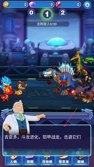 3、根据提示点击【斗龙进化】,选择“铠甲战龙”进行操作,击退敌人。
