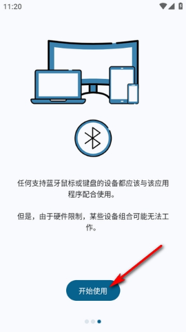 1.下载安装蓝牙键盘和鼠标Pro,之后打开,点击【开始使用】;