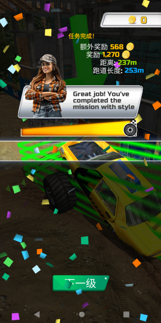 4、成功闯关后即可根据玩家在关卡中的驾驶表现进行评价,并且玩家可以根据评价获取不同的奖励。