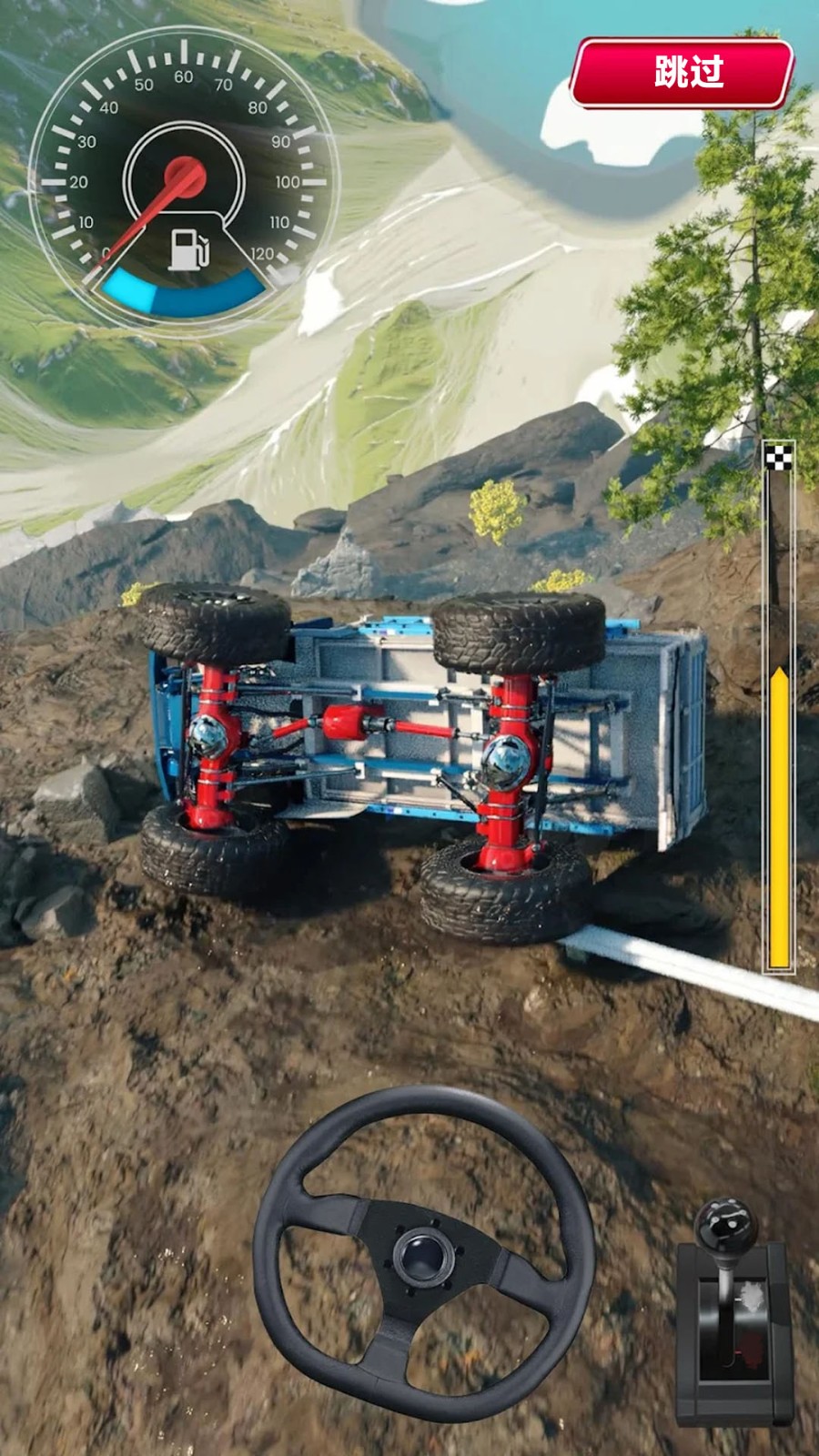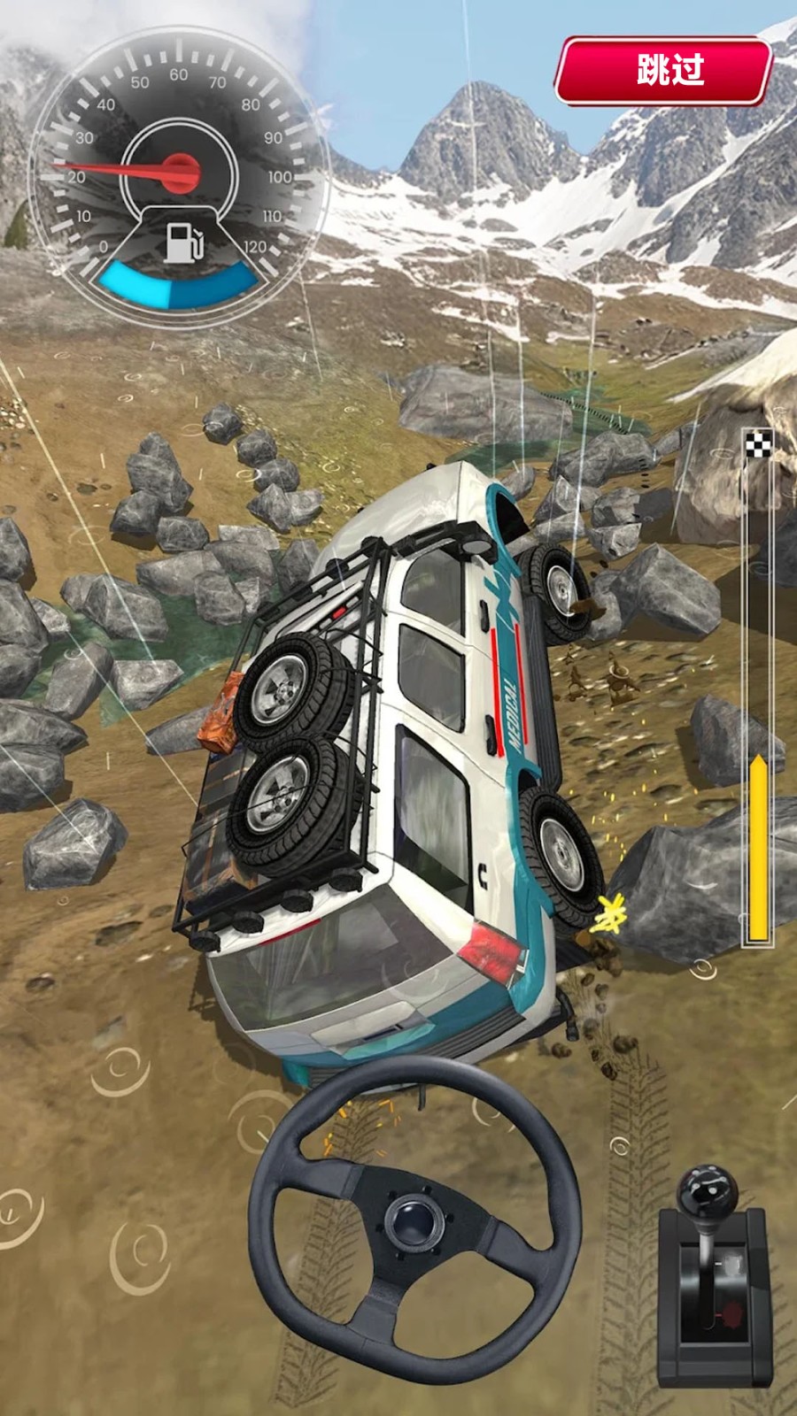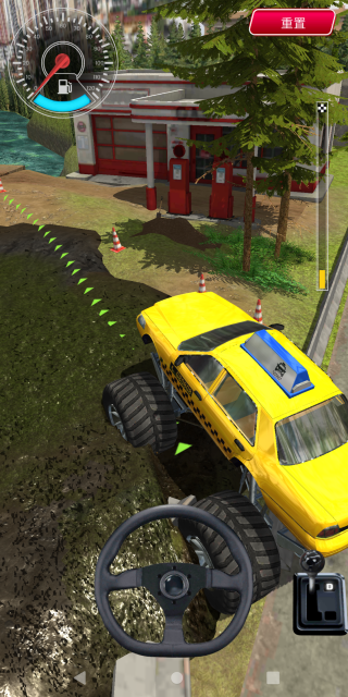 3、使用屏幕下方的方向盘来帮助汽车调整方向前进。根据虚线的提示抵达终点吧。
