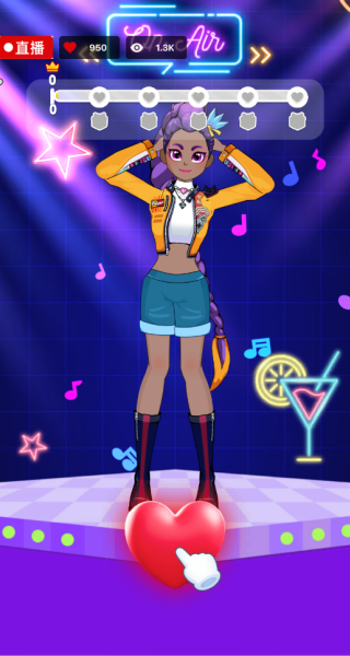 4、通过连续点击爱心按钮为穿搭评分,点击速度越快获得的时尚分数越高。