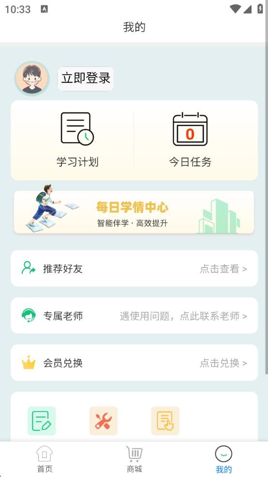 4、支持制定学习计划、查看今日任务,还有专属老师提供使用问题解答,会员兑换等权益。