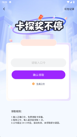 2、在口令红包中输入口令,点击确认领取即可获得红包奖励;