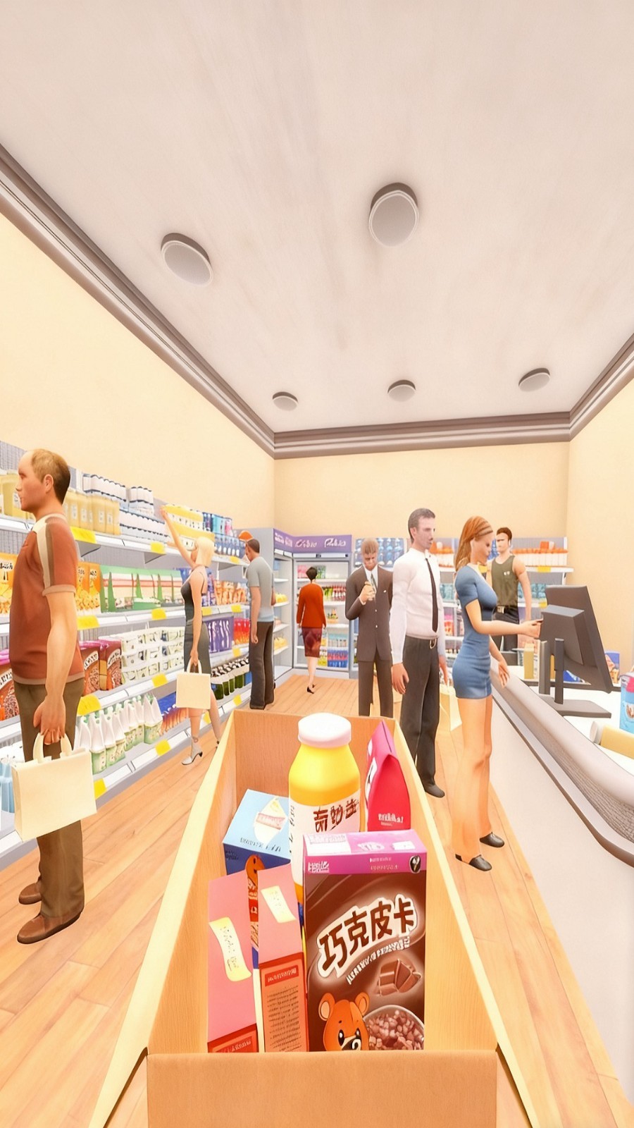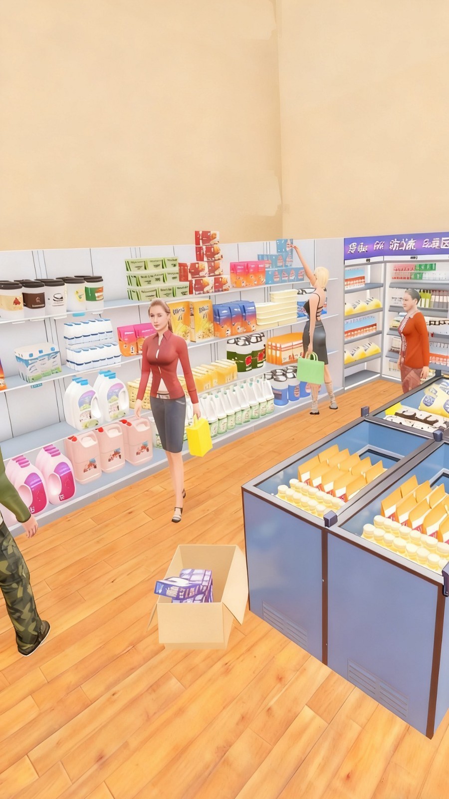 4、将包裹中的商品放置在货架上。玩家需要解锁更多商品货架以及商品,满足不同客人的购物需求,才能够赚取更多利润哦!