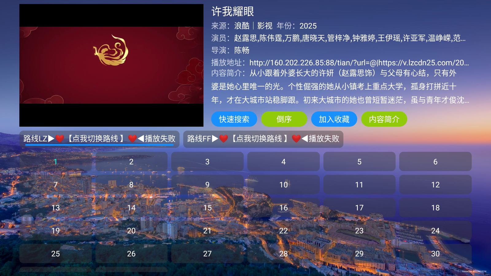 2、通过搜索找到你想看的作品,选择一个播放线路。