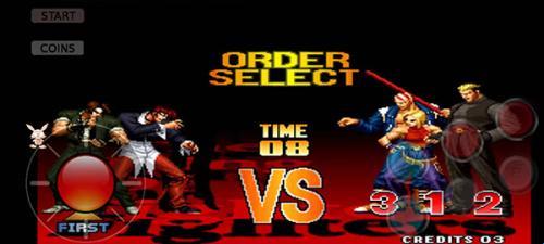 1、首先下载安装本站提供的拳皇97安卓单机版游戏,投币,确认开始游戏,选择我们喜欢的英雄