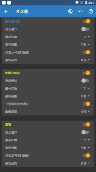 查找哈勃望远镜、ham 无线电卫星、行星、彗星等等。也可以使用多普勒频移计算和发射机频率信息。所有这些都可以通过应用内购买获得。