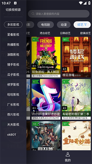 2、侧边会显示所有的内置影视源,直接点击即可切换。