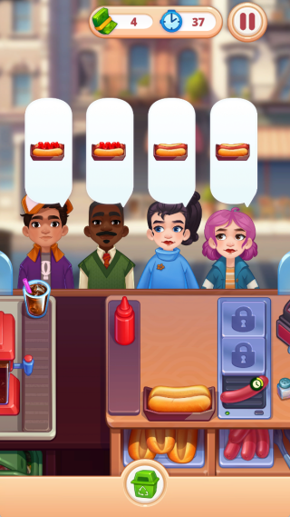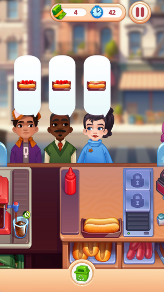 3、戏中的画面精美细致,让玩家可以更加沉浸在游戏世界中,而且不同顾客的需求不一样,需要按照需求去制作美食获取收益。