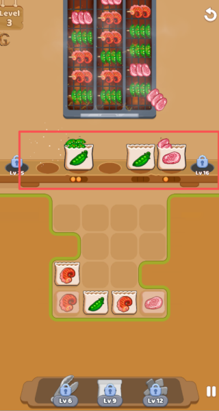 1、积累等级后优先解锁额外口袋,扩大分类存储空间,为后续多品类食材混搭关卡做好准备。