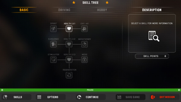 1、进入游戏前,先看一下玩家扮演司机时的基本参数:生命值、耐力值、饱腹值,卫生值
