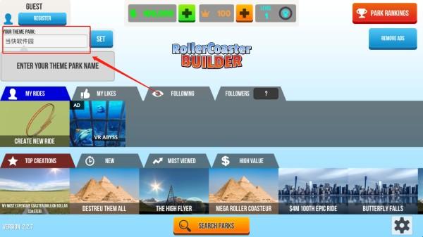 1、下载游戏进入,右上方可选择为自己的游乐场命名