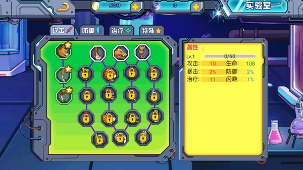 1、解锁攻击类技能与基础配件,快速提升宠物输出能力,在低难度对战中积累金币与进化资源。
