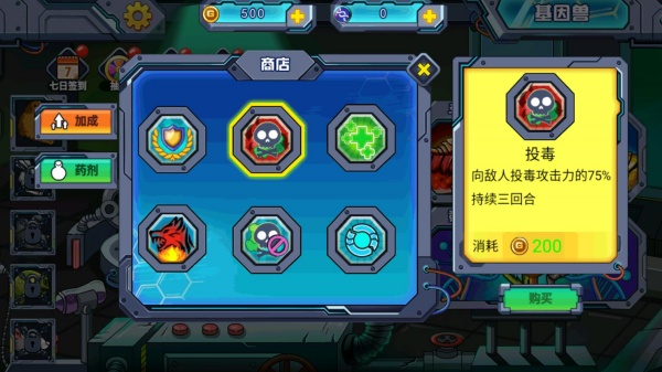 2、前往商店用战斗获得的金币解锁技能、药剂等道具,为宠物搭配实用装备。
