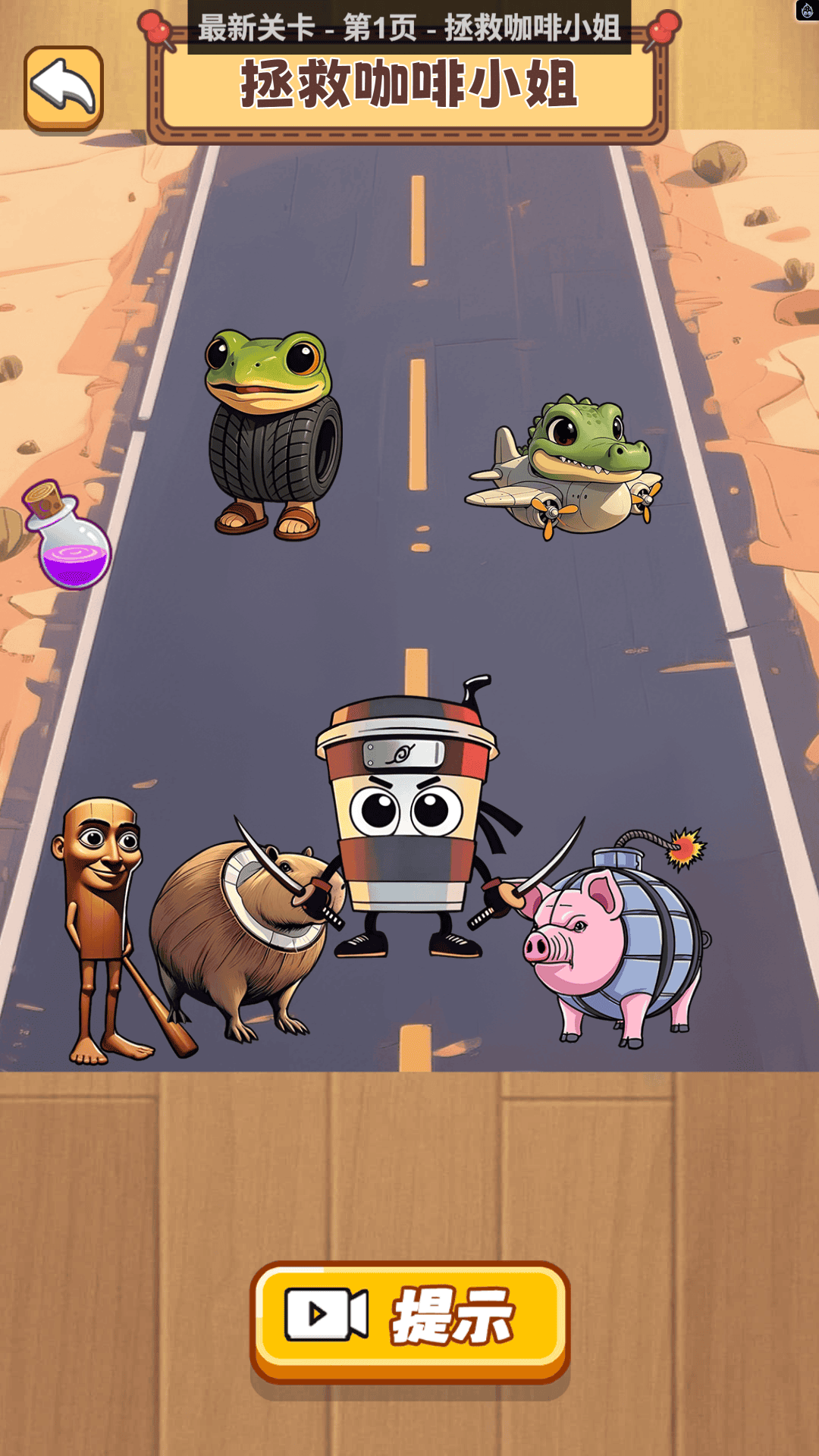 2、我们可以挑选不同的关卡进行挑战,这里有找新梗、拯救咖啡小姐等,游戏支持单人挑战与好友对战。
