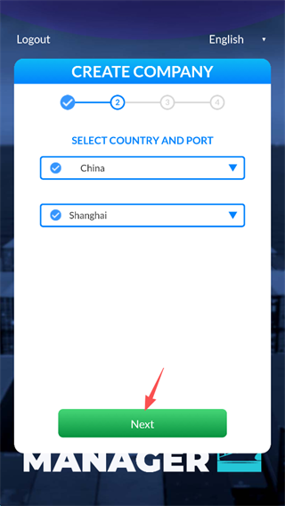 2、选择公司的初始港口,随后点击屏幕下方的“Next”。
