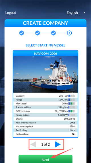 3、拥有两艘货船,玩家可以自由选择一艘货船用于航运,随后点击屏幕下方的“Nex”.