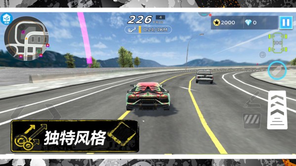 1、在开放世界中自由驾驶,触发街头竞速、特技跳跃、时间赛等随机事件。