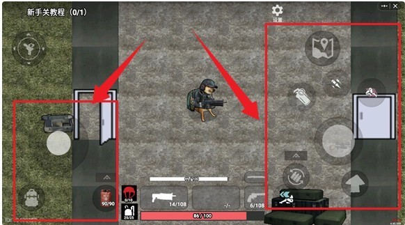 1、游戏开始时有新手教程,左侧控制移动,右侧控制开火,助玩家快速上手。