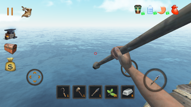1、利用手中的钩子来打捞海上的各种漂浮物,这些漂浮物都是重要的资源,利用它们来制作工具、武器。