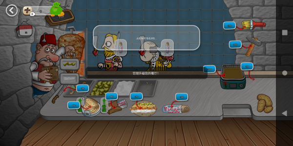 3、玩家可以升级店铺的各种物品,从而解锁新的美食品种,并提升售价,还能够吸引新的客人哦。
